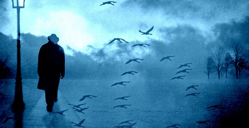 И старик бьётся рыбкой об лёд, ждёт, с лицом батрака,